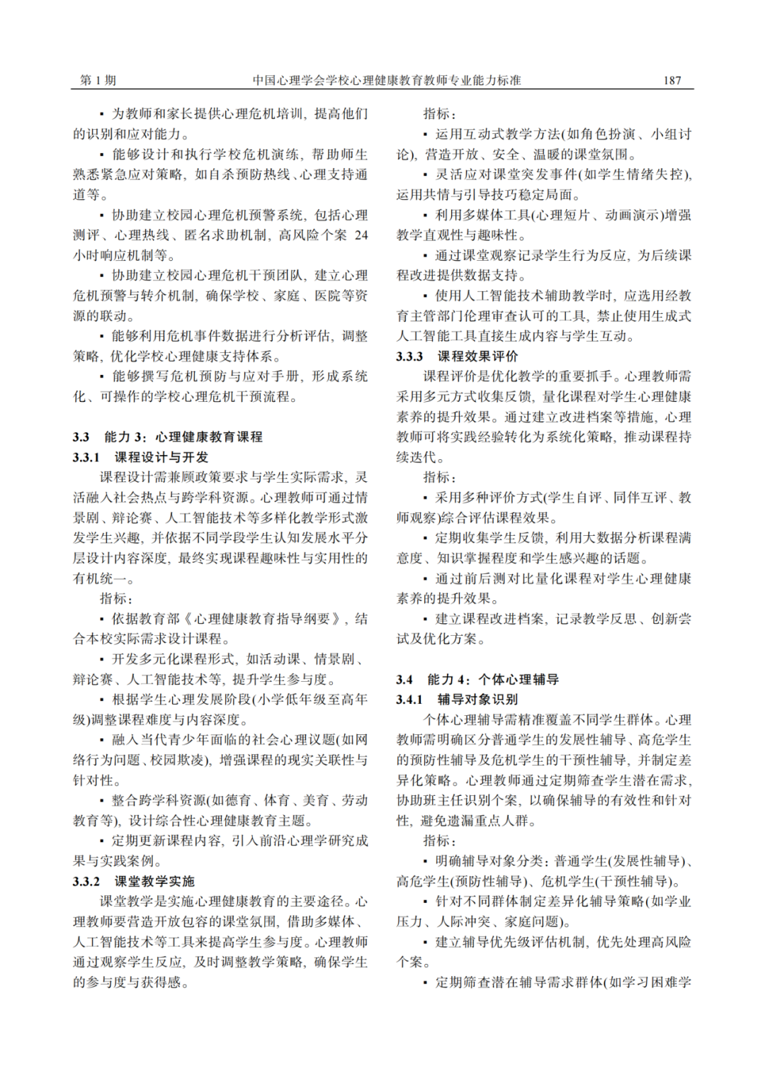 《学校心理健康教育教师专业能力标准》明确了心理健康教师的专业要求,为培养和选拔人才提供了依据;